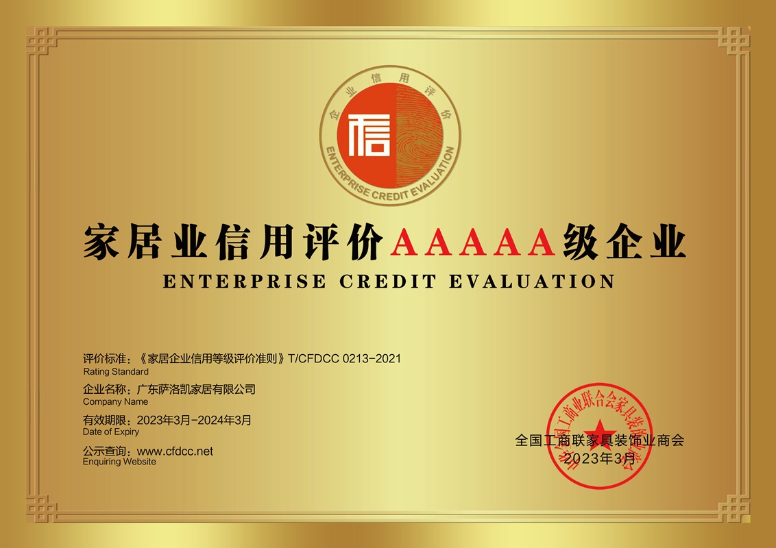 家居業(yè)信用評價5A級企業(yè)有效期至2024年