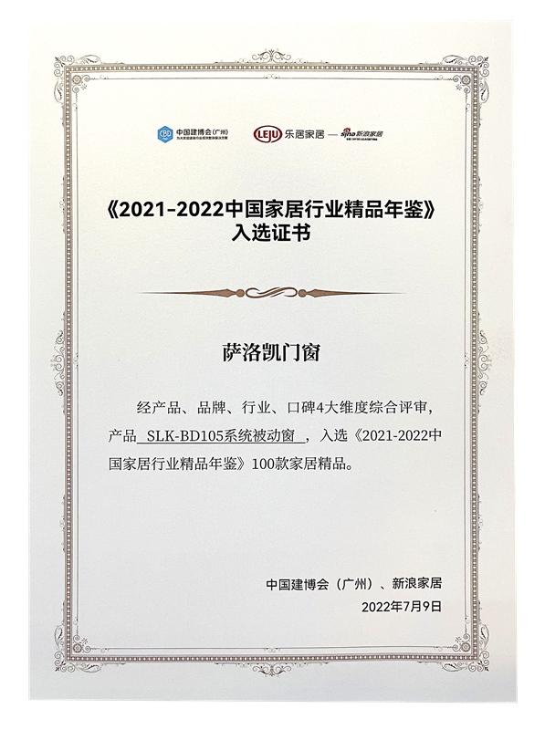 《2021-2022中國家居行業(yè)精品年鑒》入選證書2022