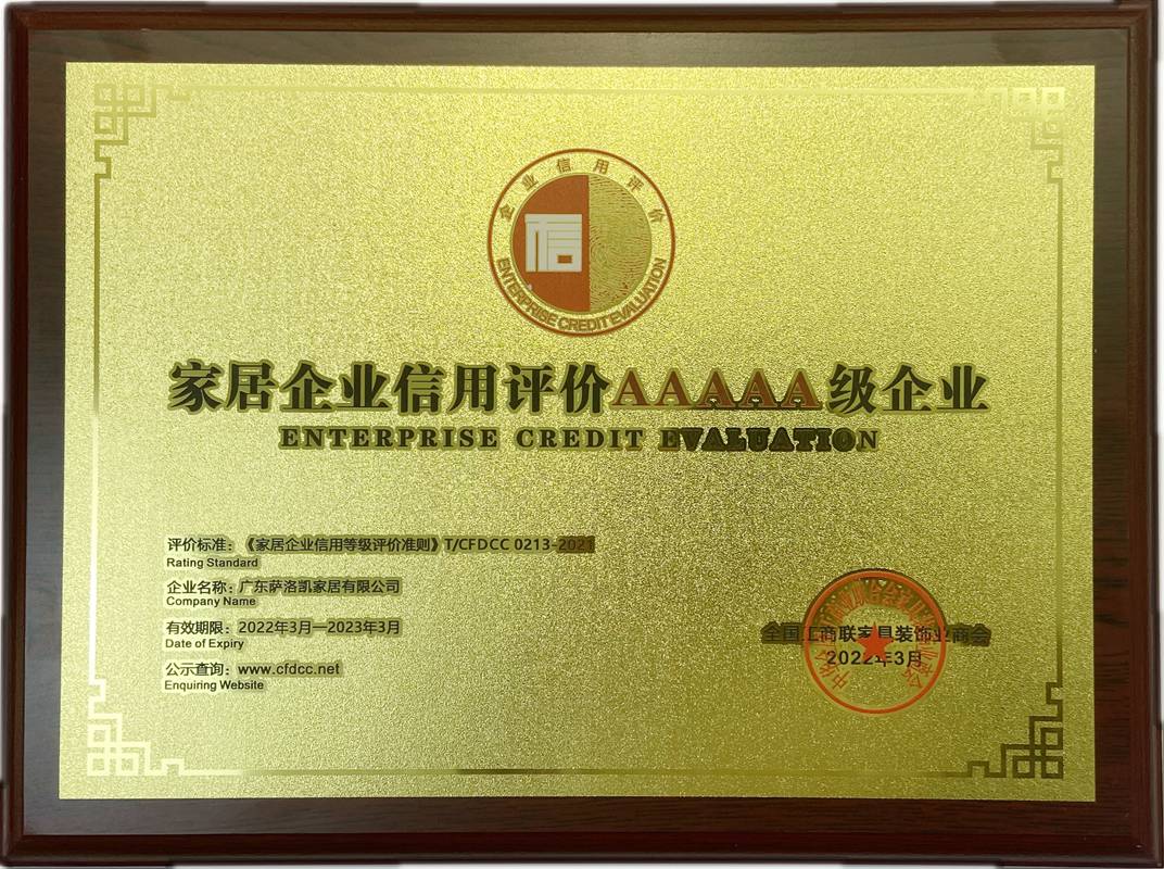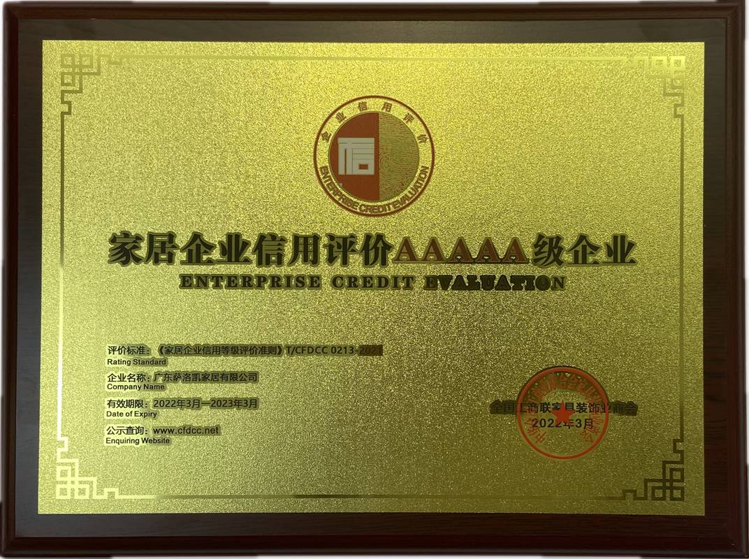 家居企業(yè)信用評價5A級企業(yè)實拍有效期2022