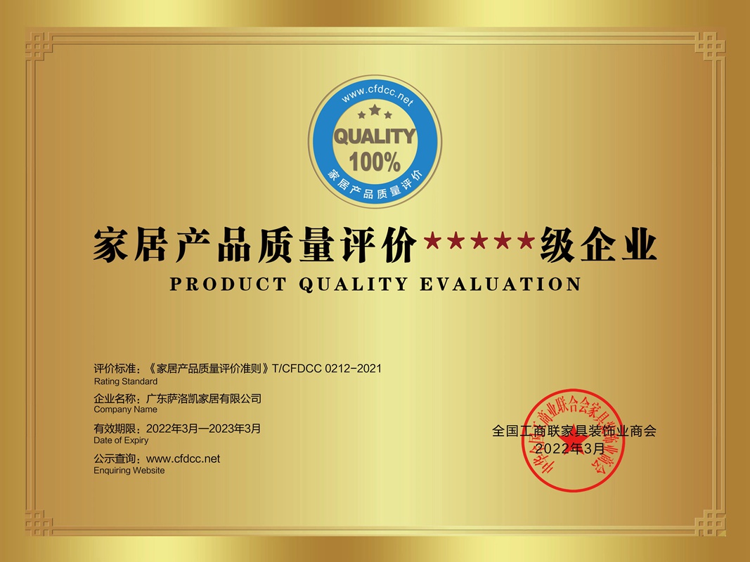 家居產(chǎn)品質(zhì)量評價5星級企業(yè)實拍有效期2022